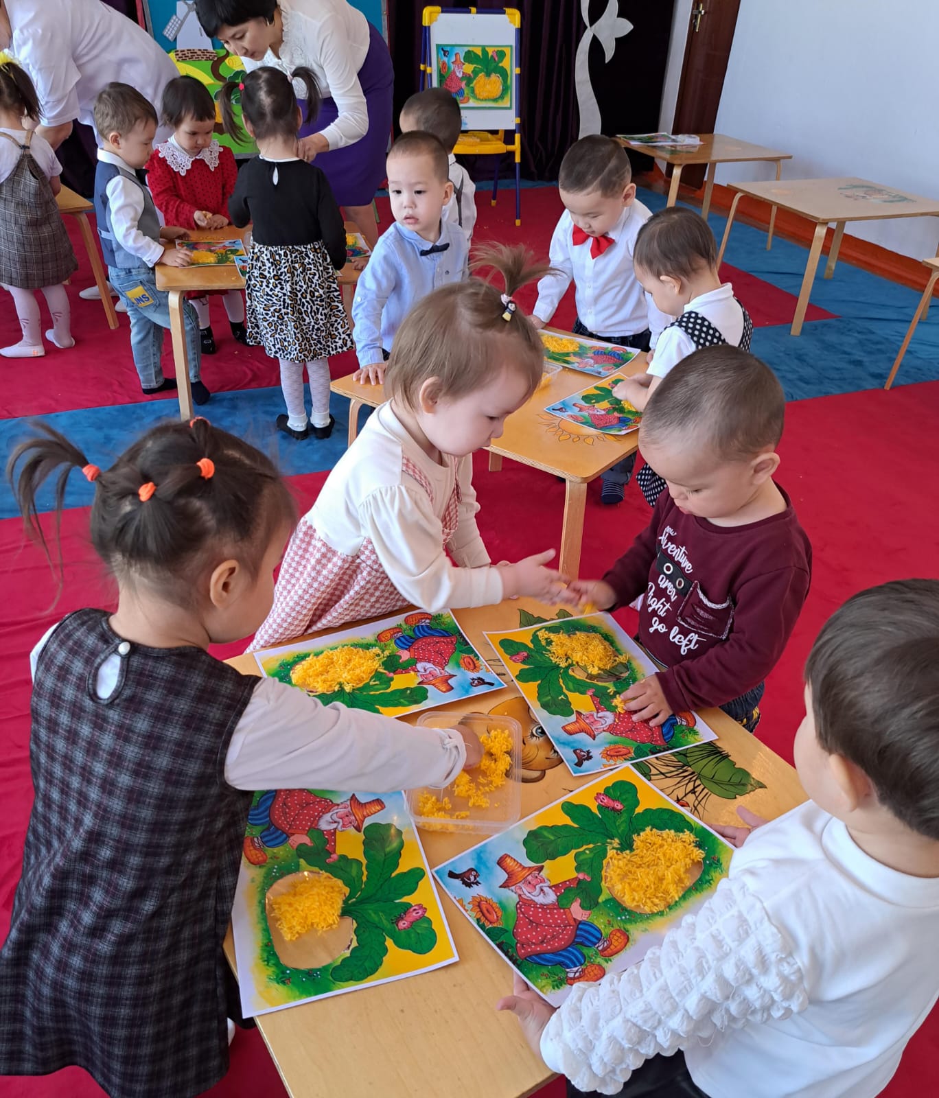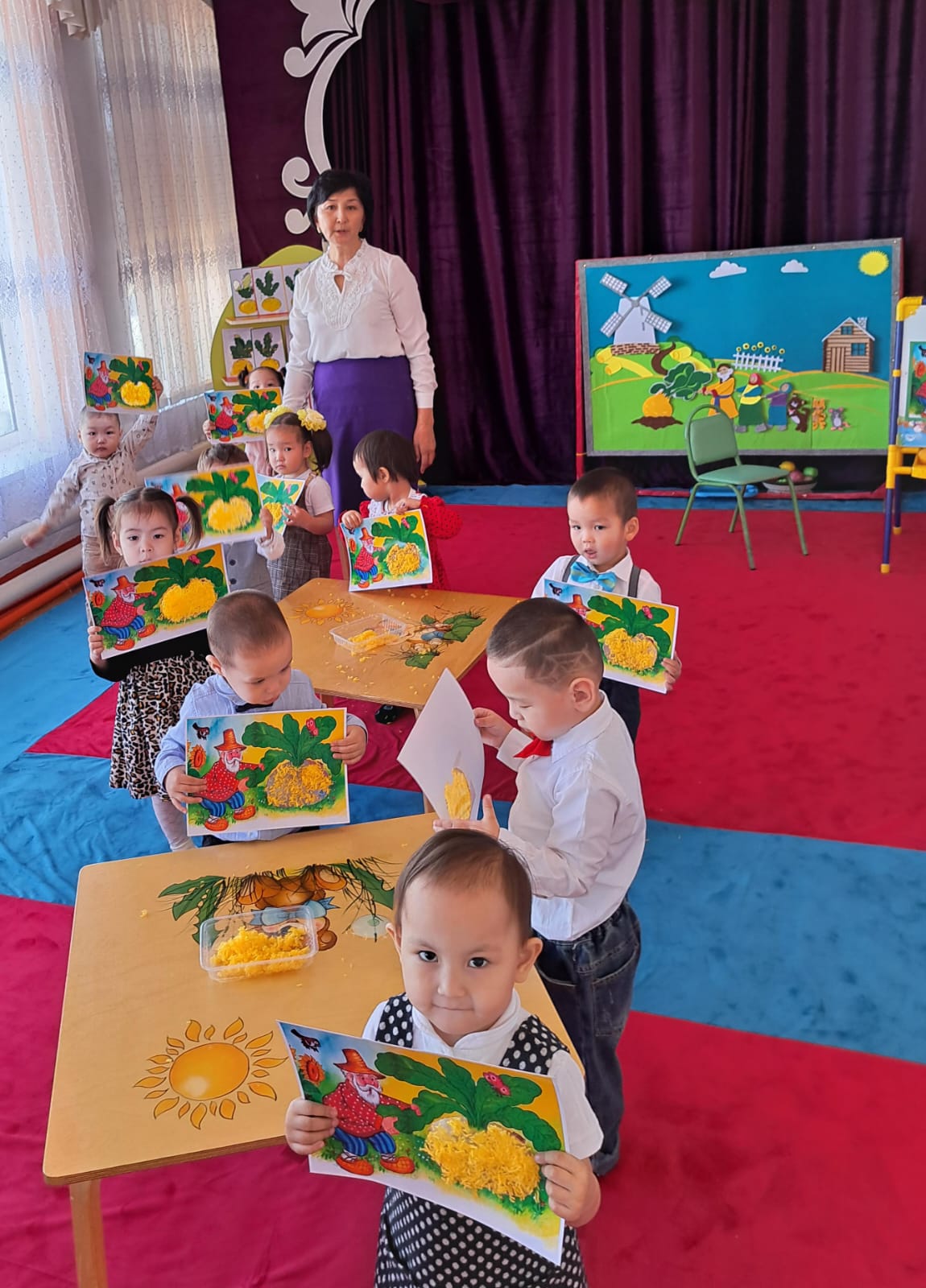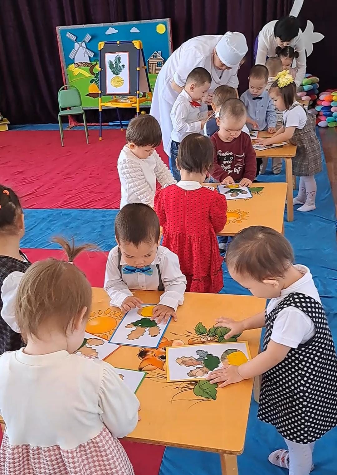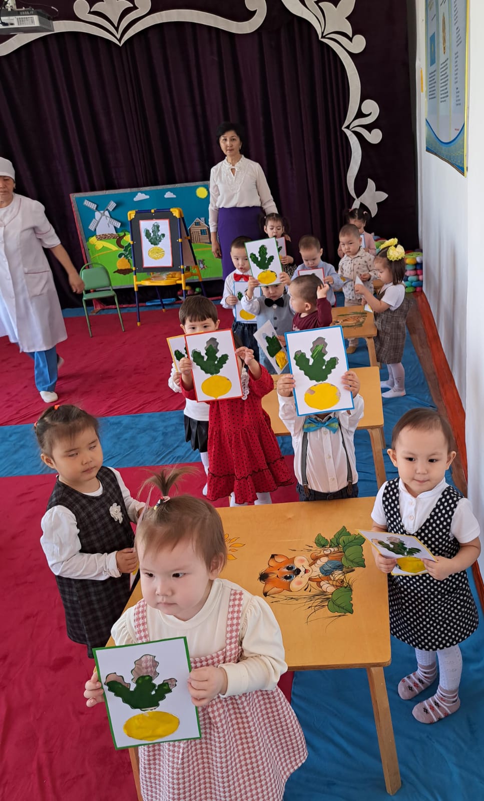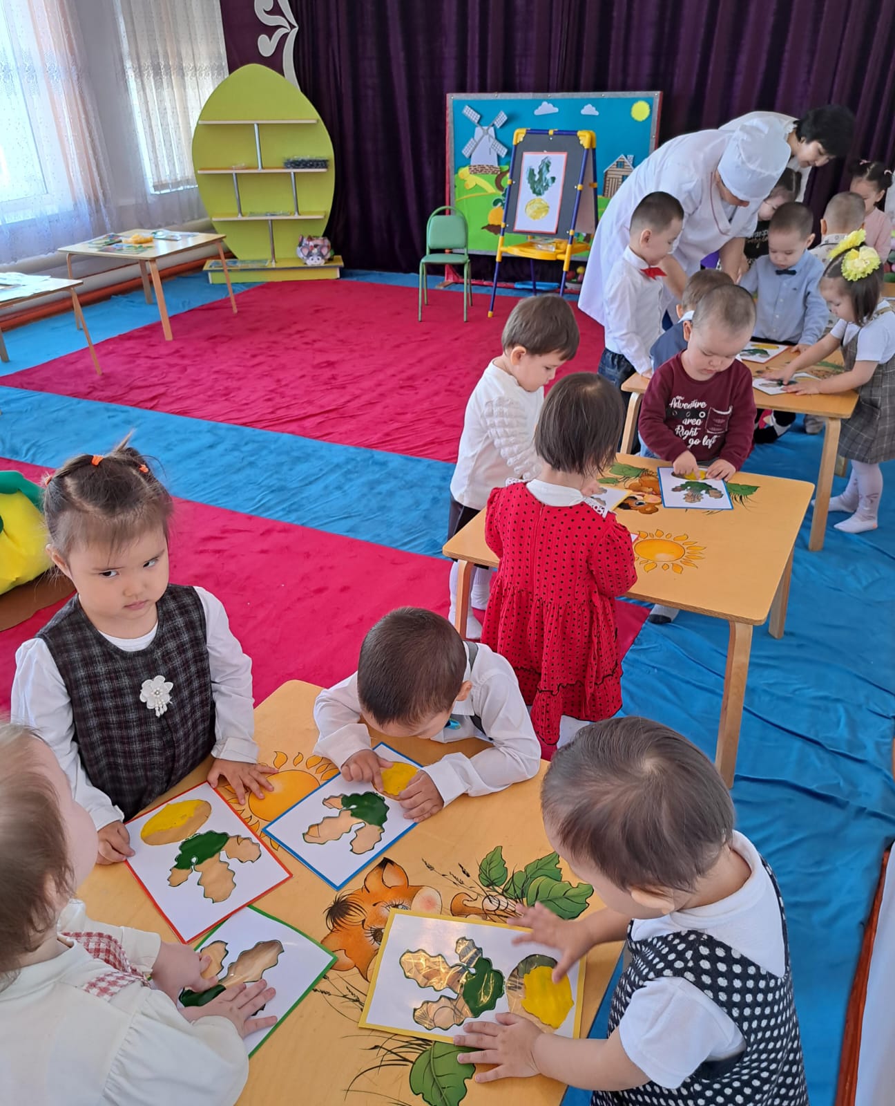 Ашық іс - əрекетін ұйымдастыра отырып, тəрбиеші балалардың коммуникативтік, шығармашылық дағдыларын дамытты. Тəрбиеші іс - əрекетті ойын түрінде ұйымдастырып, "Көлеңкесін тап","Шебер қолдар", ойындары арқылы барлық тапсырмаларды жақсы орындатып, ойындарды қызығушылықпен ойнатып, балалар мен бірге жақсы нəтижеге қол жеткізді.