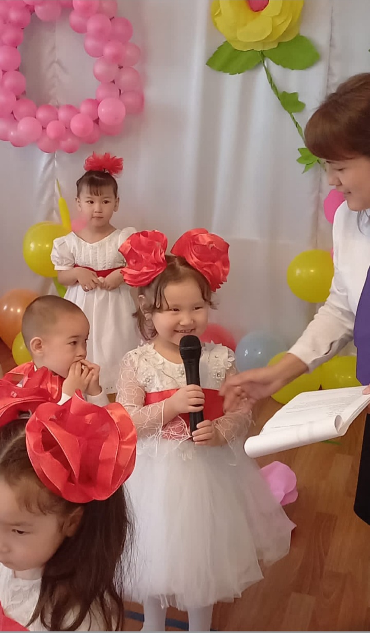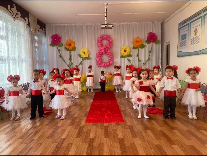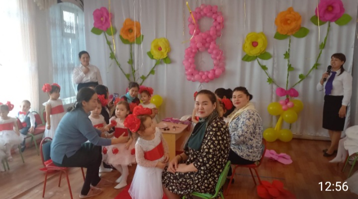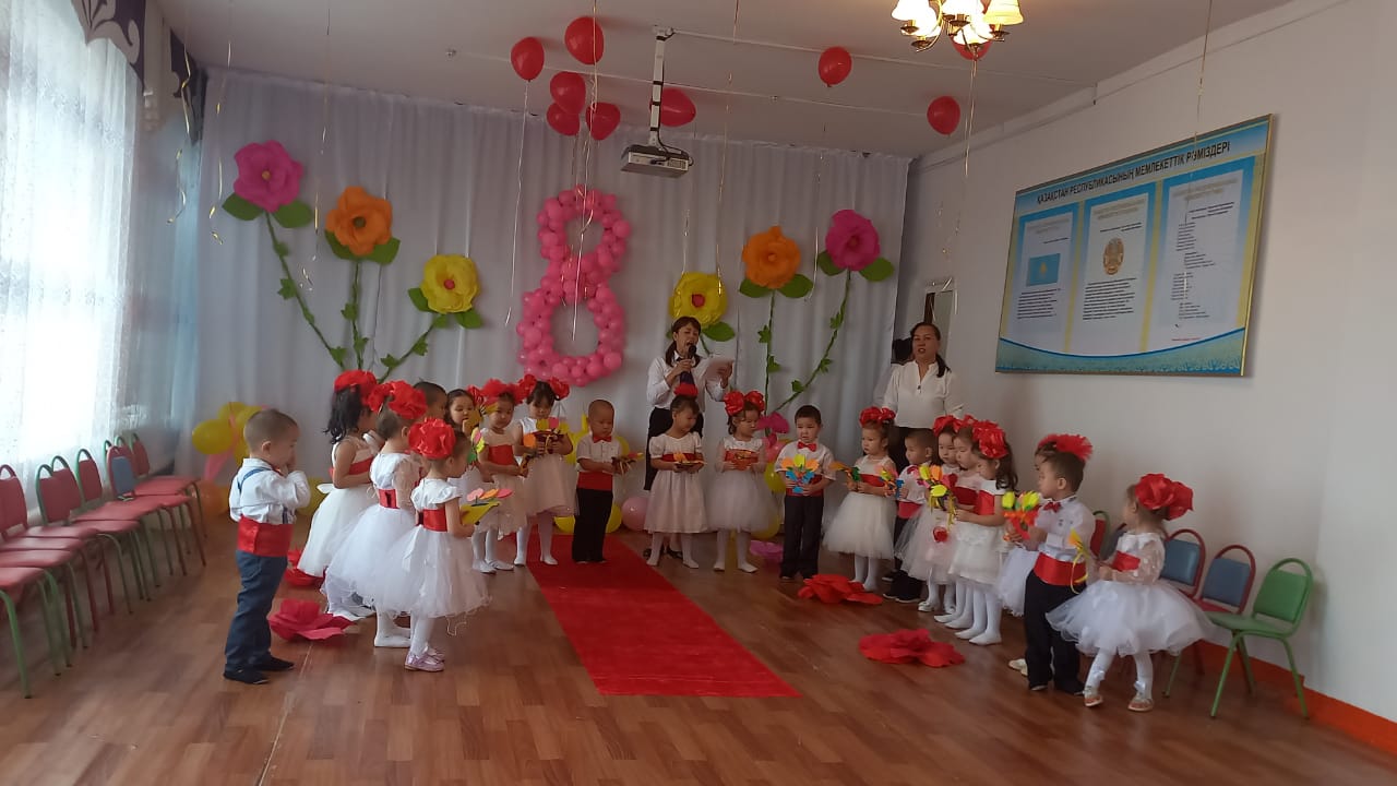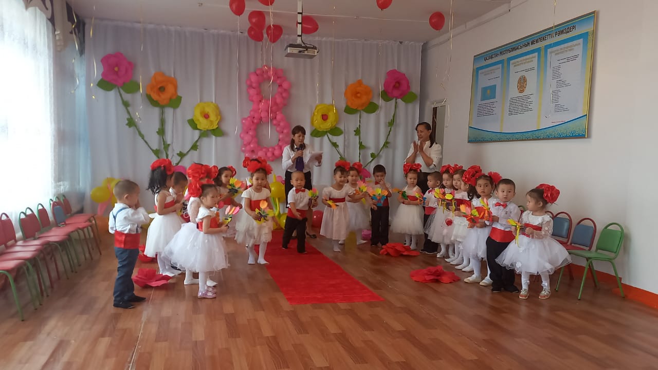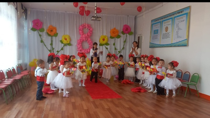 те топ балалары өлең шумақтарын айтып, би-билеп, əннен шашу шашып аналарын қуантты. Өз қолдарымен жасалған аналарына сыйлықтарын тарту етті.Аналардың қуанышында шек жоқ.