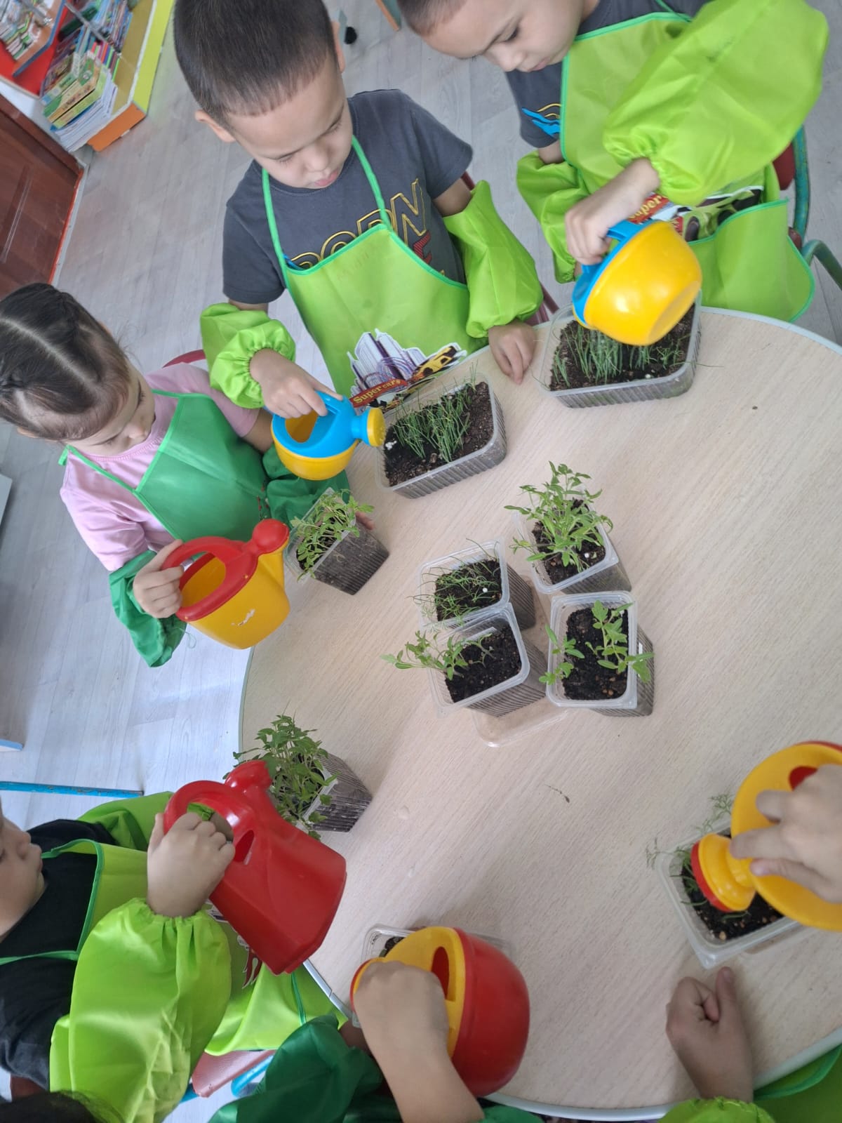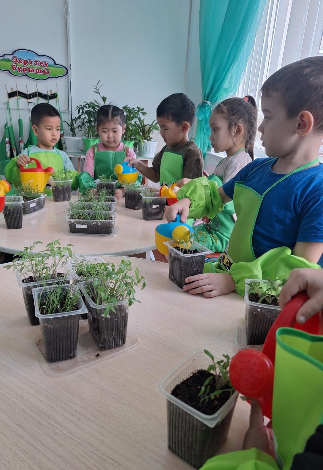 N1 санаториялық бөбекжай-бақшасы, “Жасыл әлем-кішкентай зерттеушілер” жобасы аясында Мектепалды ”Шапағат” топ тәрбиешілері топ тәрбиеленушілері мен бірге денсаулыққа пайдалы отырғызған көк жуа мен салат жапырақтарын бөлме ішінде қалай өскенін бақылауда.Балалардың күнделікті қызығушылықтары арта түсуде.