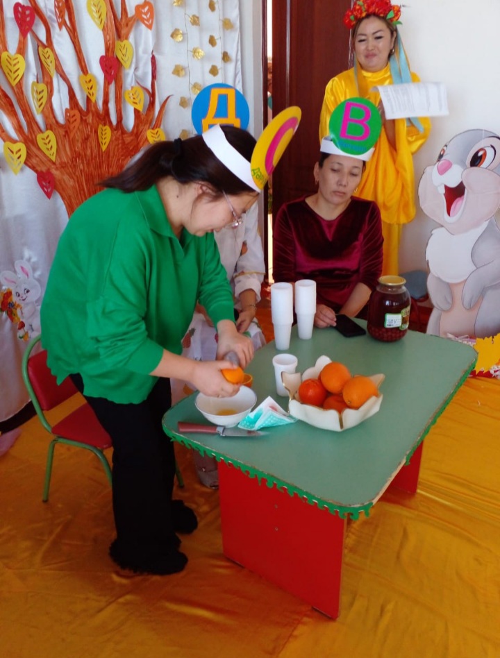 Мерекелік іс-шараға топ ата-аналары арнайы келіп, дəрумендердің бала ағзасына тигізер үлесі жөнінде айтып, табиғи шырындардың жасалу жолы жайлы лайфхактар көрсетіп көрермендер мен балаларды қуантты.