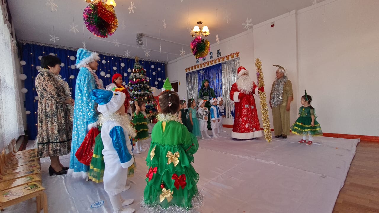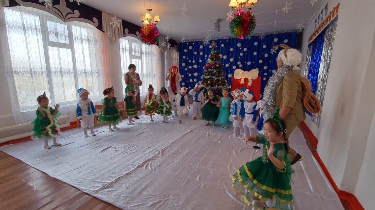 Мақсаты: Балаларға жағымды көңіл-күй сыйлау. Ән айтып, би билеп, қызықты ойындар ойнап, жаңа жыл иесін қарсы ала отырып, бір-біріне мейірімді болуға тәрбиелеу.