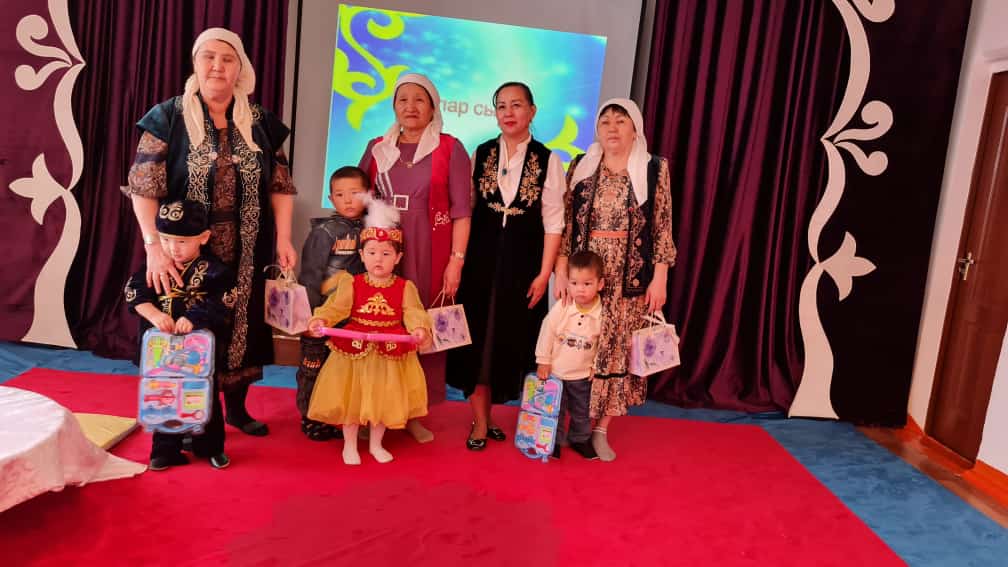 Тақырыбында əжелермен тəрбие іс - əрекетін өткізді. Мақсаты: Əжелер мектебінің жұмысын жаңғырта отырып, қазақ халқының өнерін үйрету, ою-өрнектерді атап, дұрыс орналастыра білу, олардың қасиеттерін баланың бойына сіңіруге дəріптеу. Тəрбие іс - əрекеті өз мақсатына сай əжелердің белсенділігімен ұйымдастырылып, бала бойында керемет із қалдыратындай əсерлі болды.
