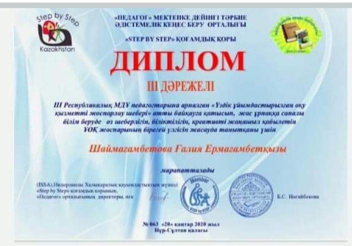 "Мектепке дейинги уйымдарда шыга́рмашылыгы уздик педагог"